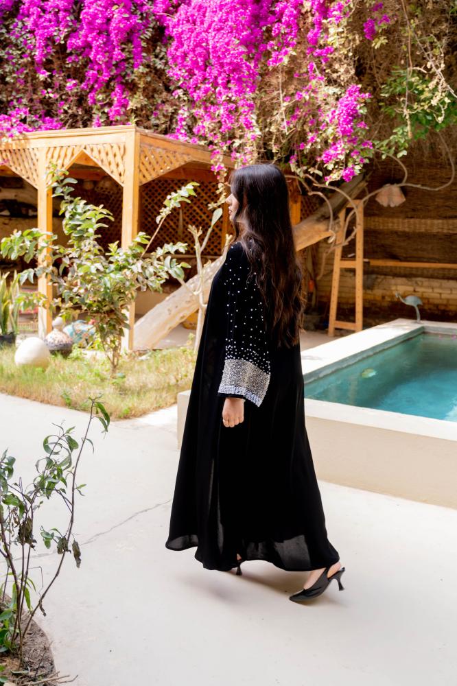 استعدي لإطلالة ملكية مع عباية سهرة تجمع بين الأناقة والرقي. تصميم فاخر مع لمسات من التطريز وحضور يأسر القلوب، هذه العباية هي الاختيار المثالي للمناسبات الخاصة توفر لك الراحة والجمال في كل لحظة.